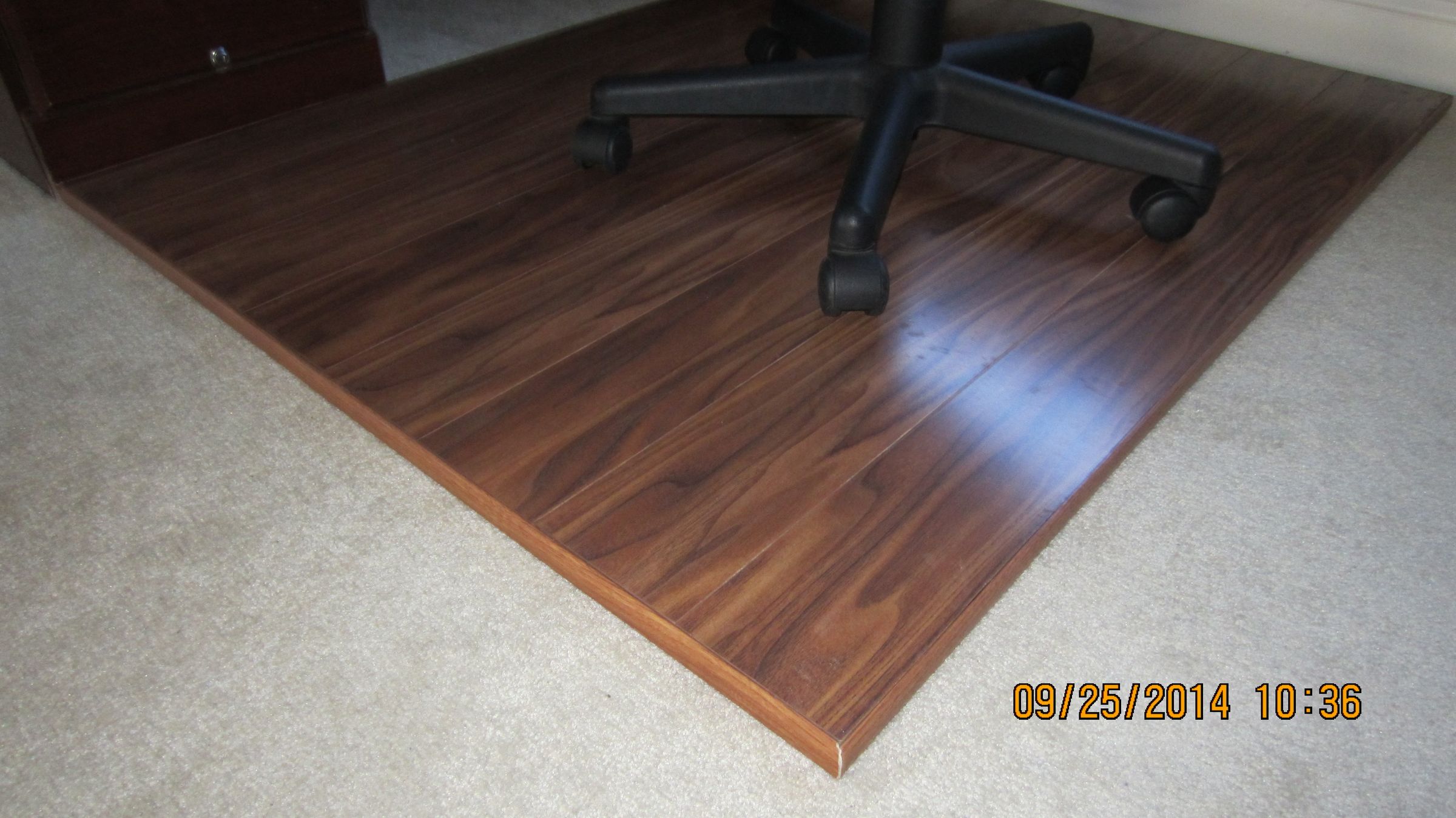 Diy Wood Chair Mat - Diy Ergonomic Chair Workstation Hacks Save Money Your Back / Plastic office chair floor protectors suck.. There are mats built for medium and low pile carpeting, carpeting with padding, carpeting without padding and wood floors. Office chair mats are durable and they are available in clear and in colors. Measure and mark the wood . Diy wooden office chair mat after finishing the chrome & leather desk for my husband's office, i realized that his rolling office chair was not the best thing for our new carpet. It is a good idea to round the corners of the plywood to help avoid them snagging on the carpet.